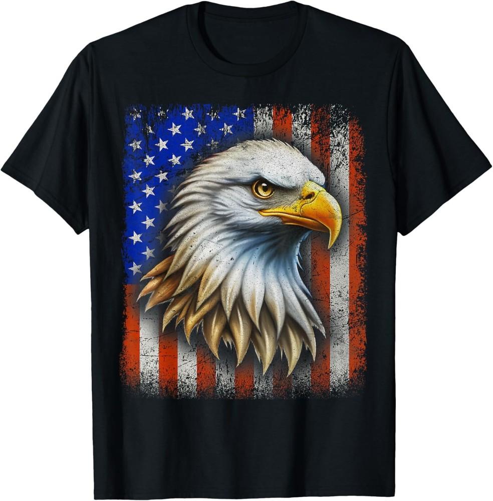 Drapeau Américain Aigle à Tête Blanche Patriotique Rouge Blanc Bleu T-shirt Unisexe T-shirt Unisexe