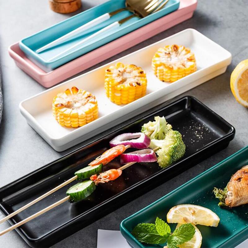 Assiette Créative en Céramique pour Plats Occidentaux Cuisine Japonaise Assiette Rectangulaire Assiette à Snacks Sushi Hôtel Restaurant Plat à Fondue
