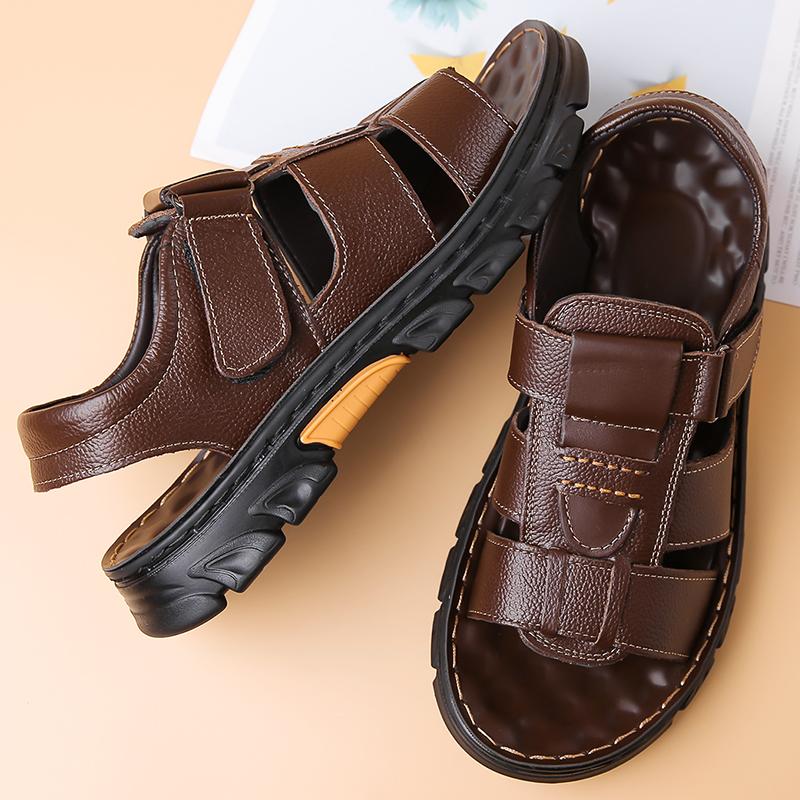 Sandales en Cuir PU pour Hommes Style Été Bout Ouvert Plage Chaussures Polyvalentes Antidérapantes Chaussures Décontractées Mode Homme Sandales Romaines Plates