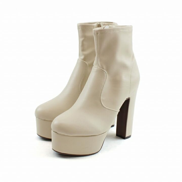 Vivian Women's Stretch Platform Short Boots with 13.5cm Heel, Beige, Size M (23.0-23.5cm), V9900AW