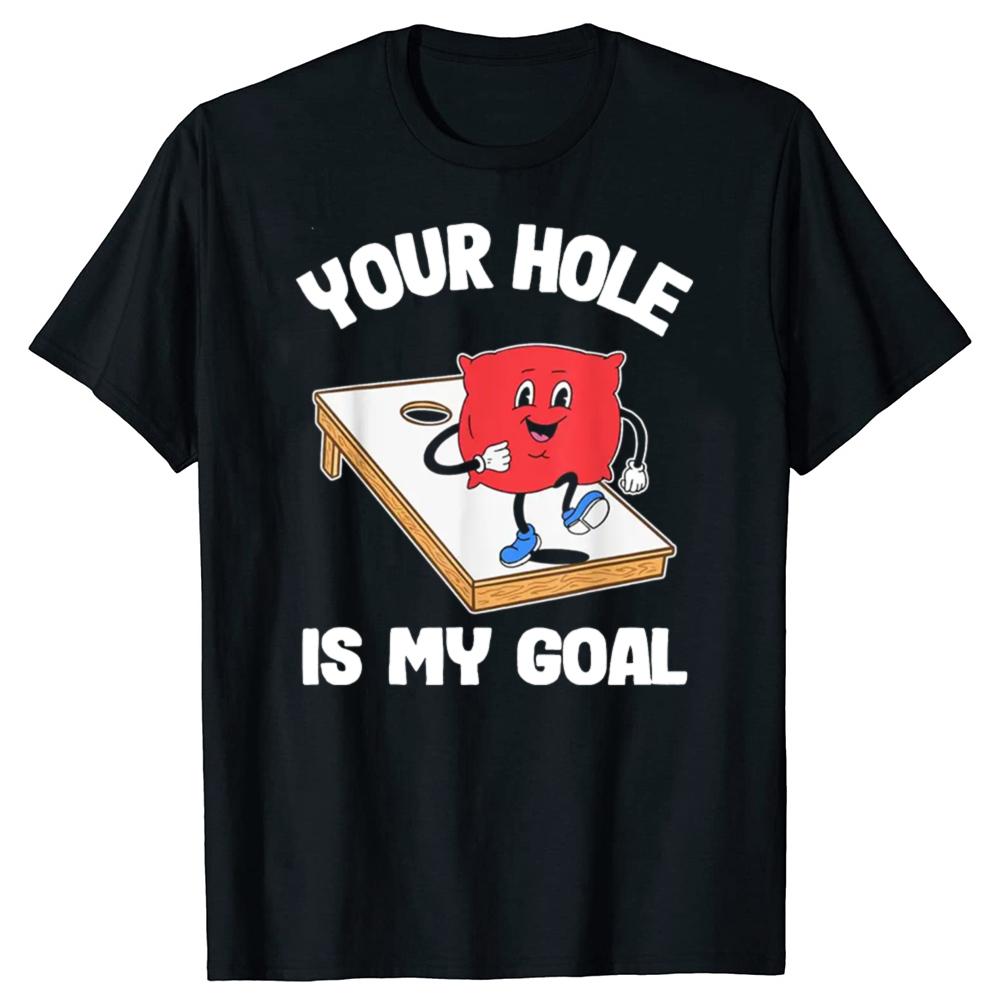T-shirt drôle 'Your Hole Is My Goal' pour Corn Hole avec des sacs de haricots - Cadeaux d'anniversaire Vêtements pour hommes Mode Décontracté Lâche Surdimensionné
