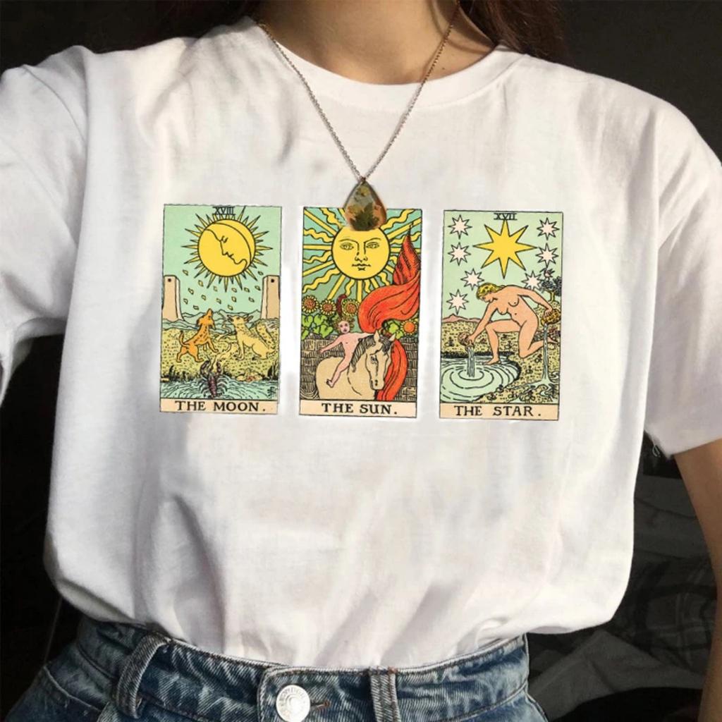 Sun Moon Star Tarot Cards Graphic T-Shirt Vintage Fashion Women's Cute Aesthetic Casual Printed Tee Hipsters Witch Shirt