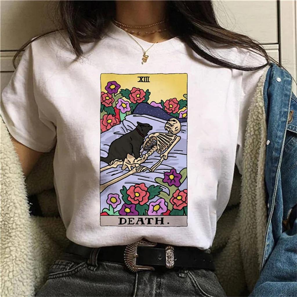 T-shirt For Women kawaii Cat Tarot Cute shirt Fashion Top Female O-neck Tees Short Sleeve Tee Shirt Femme Summer woman tshirts