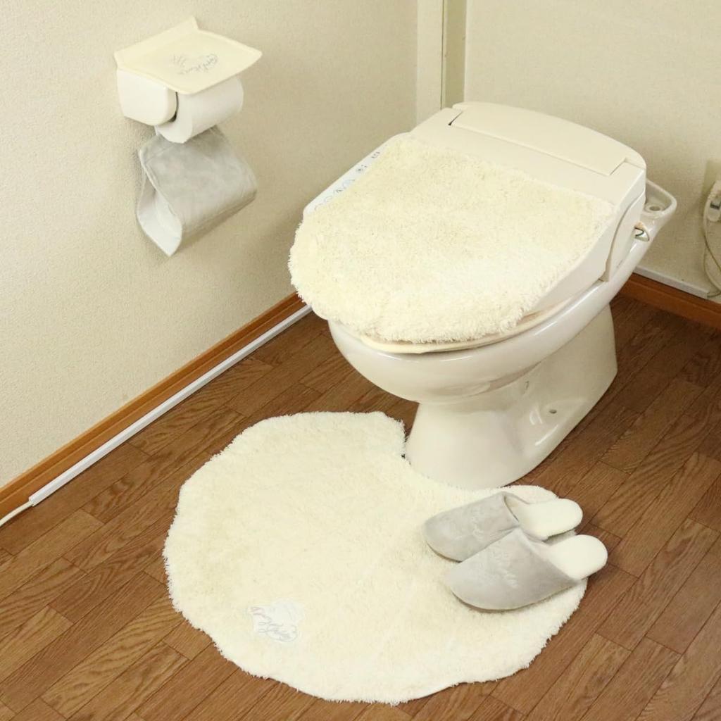 Cet ensemble de quatre pièces comprend un tapis de toilette, un couvercle d'étanchéité à ventouse, des pantoufles et une housse pour porte-papier. Les couleurs pastel douces et pâles sont apaisantes. Les tapis de couleur pastel créent une atmosphère douce et s'intègrent facilement à n'importe quelle surface.. Fidèle à son nom « joyeux », cet ensemble crée un espace amusant et doux.. Couleurs: Tapis de toilette et housse de siège: blanc; Pantoufles et Housse de Porte-Papier: Rose. Ces tapis entièrement lavables sont fabriqués avec un fil très absorbant et présentent une broderie argentée pour le souci du détail.. Le support antidérapant garantit qu'ils restent en place pour une utilisation confortable. Tous les articles sont entièrement lavables, donc s'ils se salissent, vous pouvez simplement les mettre dans la machine à laver pour un nettoyage facile.. Tapis de toilette: Couleur: Blanc, Taille: Environ. 55 x 65 cm, Matériau: Poil/100% Polyester (Support antidérapant). Couvercle de couvercle: Couleur: Blanc, Taille: Environ. 55 x 65 cm, Matériau: Poil/100% Polyester. Couvercle Porte-papier: Couleur: Rose, Taille: Environ. 17 x 16 x 0,5 cm (Dimensions supérieures), Poids: Environ. 50 g, Matériau: Polyester, rayonne, etc.. (Ne peut pas être utilisé avec les porte-rouleaux de papier toilette à un seul montant). Chaussons: Couleur: Rose, Taille: Environ. 24-26 cm, Matériau: Tissu extérieur: Polyester, rayonne, etc.. (Fabriqué en Chine, Fabricant: Okato Co., Ltd.) (Ne peut pas être utilisé avec les toilettes à fonction d'ouverture/fermeture automatique.) (Le couvercle du porte-papier ne peut pas être utilisé avec les porte-papiers qui n'ont pas de crochet de connexion supérieur et inférieur). (Ce produit est un produit d'hygiène et ne peut pas être retourné.) *Précautions de lavage: Ne pas sécher en machine. (La chaleur peut provoquer une déformation ou des dommages.) - Ne pas utiliser d'assouplissant ou d'eau de Javel. - Ce produit peut ne pas être compatible avec certains types de machines à laver, tels que les machines à chargement frontal.. Veuillez lire attentivement le manuel d'instructions de votre machine à laver avant le lavage.. - Utilisez un détergent ménager et un filet à linge lors du lavage en machine.. - Un léger dégorgement est normal au début, veuillez donc le tenir à l'écart des autres articles.. - Le caoutchouc utilisé dans ce produit est sensible à la lumière directe du soleil. Toujours sécher à l'ombre. ●Ce produit a été emballé sans le support du couvercle.