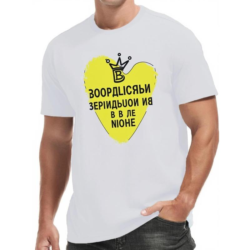 European Size Mens Classic Fit White Graphic T Shirt Short Sleeve Crewneck Russian Text Print Casual Street Style Tee Breathable, Spring/Summer Top