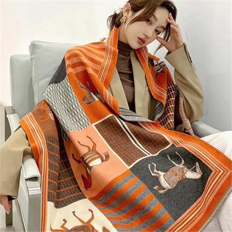 Autumn and Winter European and American Versatile Thickened Warm Scarf Imitation Cashmere Air Conditioning Shawl Light Luxury Style Scarf