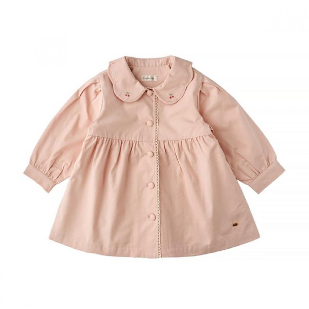 This is a trench coat with cherry embroidery as an accent on the collar. The basic pink color is useful for various items and coordination, and the use of lace tape adds a lovely yet luxurious feel.