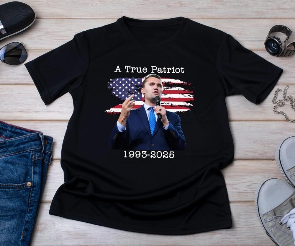 T-shirt Charlie Kirk, Vrai Patriote 1993-2025 Rip Mémorial Drapeau Américain T-shirt Unisexe