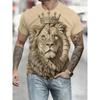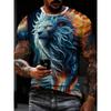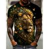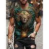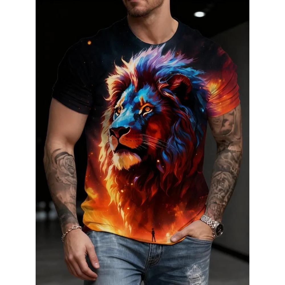 Men's Animal Domineering Lion Print Short Sleeved T-shirt Large Loose Casual Fashionable Comfortable Soft Breathable T-shirt