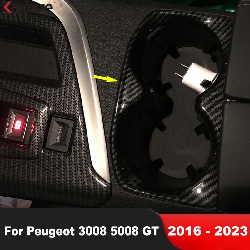For Peugeot 3008 5008 GT 2016- Carbon Fiber Car Console Water Cup Holder Frame Cover Trim Interior Accessories