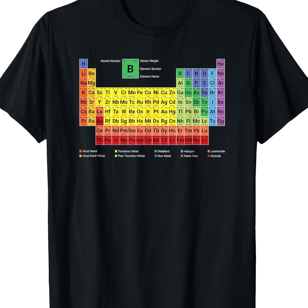 T-shirt Graphique Tableau Périodique des Éléments Étudiant en Sciences Chimie Manches Courtes Décontracté