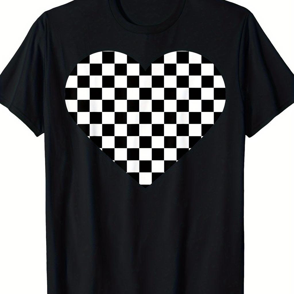T-shirt Graphique Cœur à Carreaux Coton Doux Décontracté Manches Courtes pour Hommes Femmes