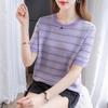 Chemisier d'été pour femme, en maille jacquard géométrique, col rond, manches courtes, coupe ample et décontractée