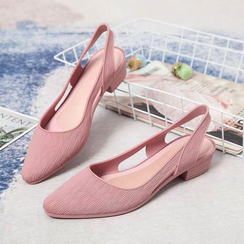 Women's Summer New Low Heel Slip On Sandals Soft sole Non Slip Waterproof Shallow Pointed Toe Match Skirt Sandals Beach Sandals