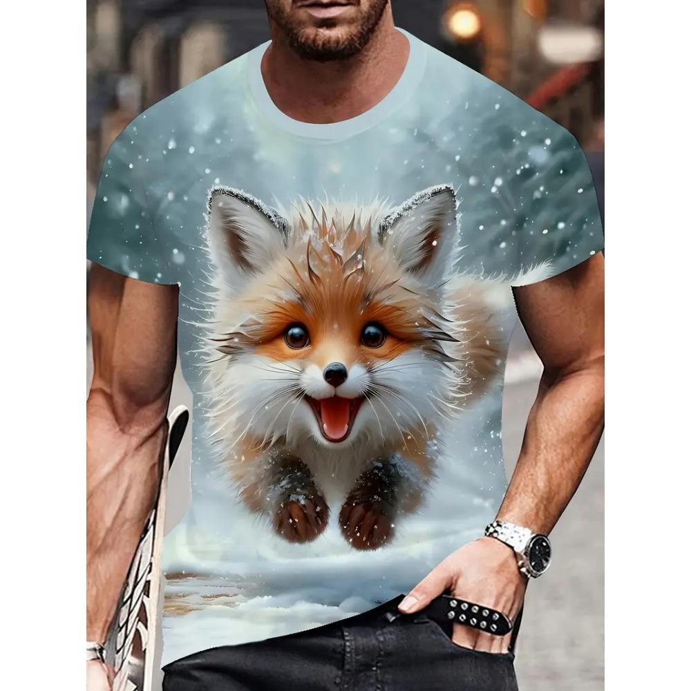 Novelty Fox Graphic 3D Printed Men T-Shirts Hip Hop Personality Round Neck Tees Short Sleeve Tops Harajuku Y2k Men Kids Clothing