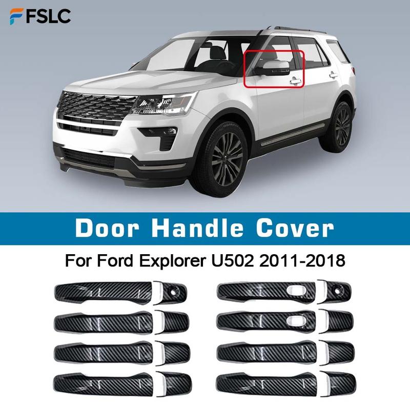 Door Handle Cover For Ford Explorer U502 2011~2018 Classic carbon Black Smart Stickers Trim Car Decorate Exterior