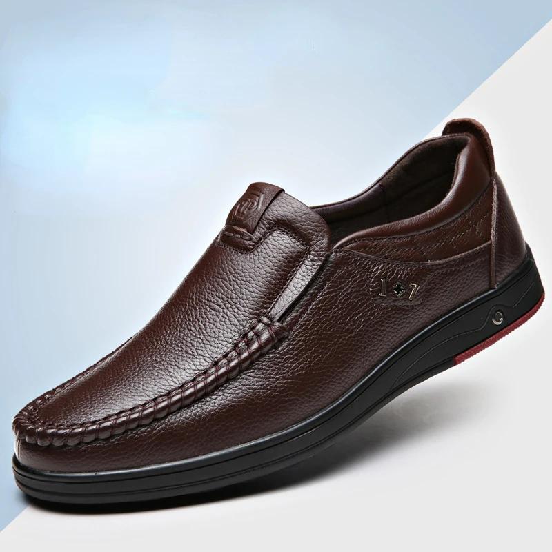XIHAHA Mode Cuir Véritable Chaussures Décontractées Homme Marque de Luxe Mocassins Loafers Homme Respirant à Enfiler Chaussures de Conduite Baskets