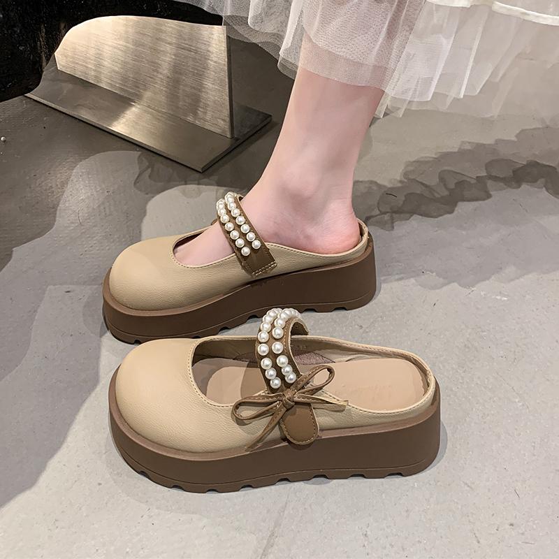 Cute Thick Bottom Tall Mary Jane Slippers 2026 New Ladies' Anti Slip Baotou Slippers for Women