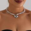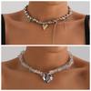 Y2K Heart Beaded Necklace Women Boho Irregular Crystal Class Gravel Clavicle Chain Cool Y2K Choker Exquisite Fashion Jewelry