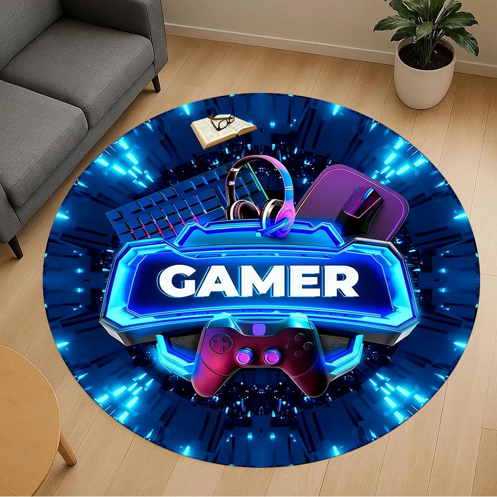 1pc Gamer Controller Round Chair mat office Area Rug - Non-Slip, Floor Mat for Office, Bedroom, and Indoor Decor p127285