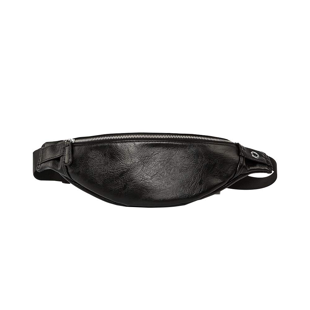 Whatna Leather Body Bag for Waist Pouch with Earphone Crossbody Sports Leather Black 3-Way Bag/One-Shoulder Men, Hole, Bag, Bag, Water-Repellent, Bag,
