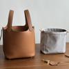New leather first layer cowhide lychee pattern bucket bag handbag vegetable basket bag women's bag