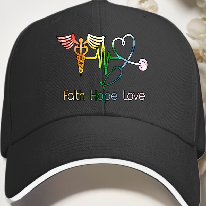 Faith Hope Love Medical EKG Stethoscope Caduceus Baseball Cap Polyester Adjustable Casual Cap for Healthcare Workers