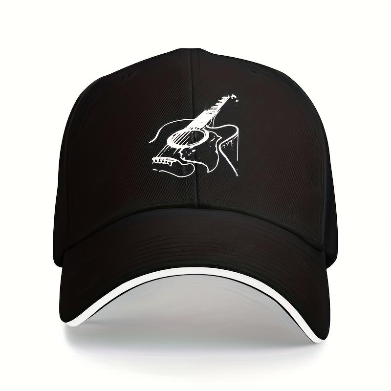 Guitar Sketch Baseball Cap Breathable Polyester Adjustable Music Lover Gift Outdoor Sports Cap