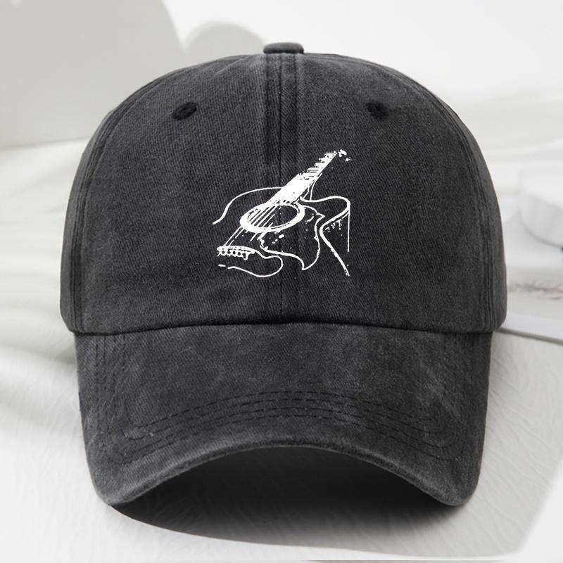 Hand Washable 100 Polyester Woven Unisex Guitar Print Baseball Cap Vintage Polyester AdjustableFor Any Season