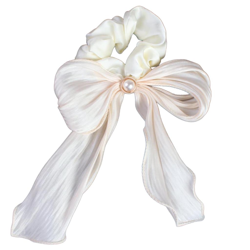 White Fang Ribbon Scrunchie Hair Tie Hair Accessory with Cute and Stylish for AZ569 Pearls, Women, (Beige)