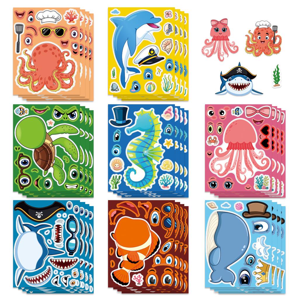 Non-Toxic 8Sheets Diy Ocean Animal Puzzle Stickers Set For Kids Creative Jigsaw Stickers Octopus Shark Crab Designs Children'S Toy Gift