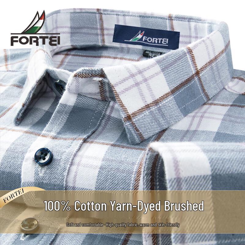 Chemise à carreaux à manches longues en coton brossé 100% pour homme Futing