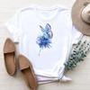 Taille européenne Femme Papillon Mignon Tendance Dessin Animé Mignon Impression Tee Haut Mode T-shirt Femme Vêtements T Manches Courtes T-shirts Graphiques