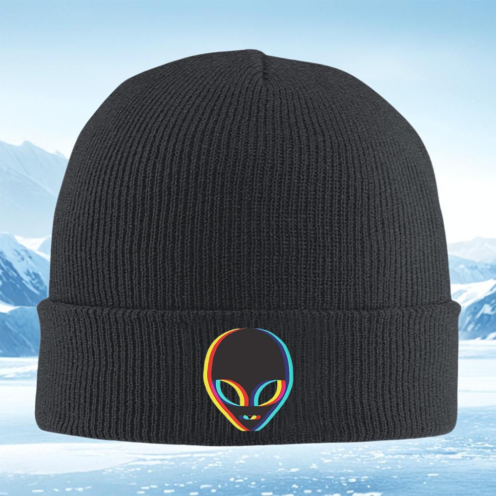 Alien face bright color design Men Women Unisex Knitted Hat Beanie Pullover Cap Winter Thermal Warm Christmas Outdoor Cycling Hi