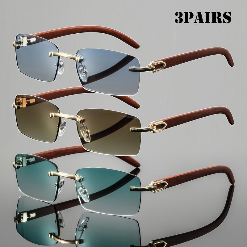 3 Pcs Men's Metal Square Frameless Retro Elegant High-end Light Luxury Casual Fashion Glasses