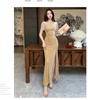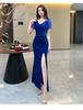 New evening dress women's high-end sexy low-cut dress women's thin temperament V-neck long dress