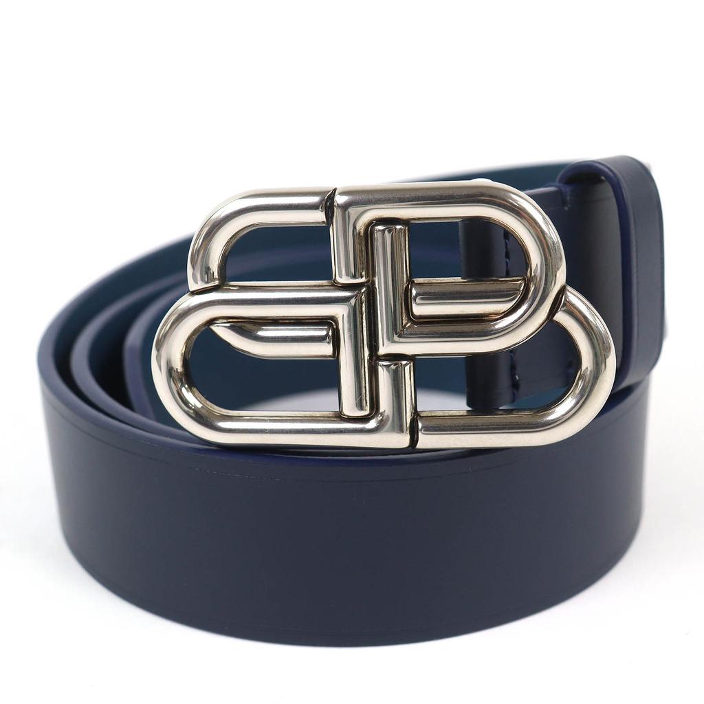 Excellent BALENCIAGA belt BB logo metal buckle leather Navy leather mens 570370 Used