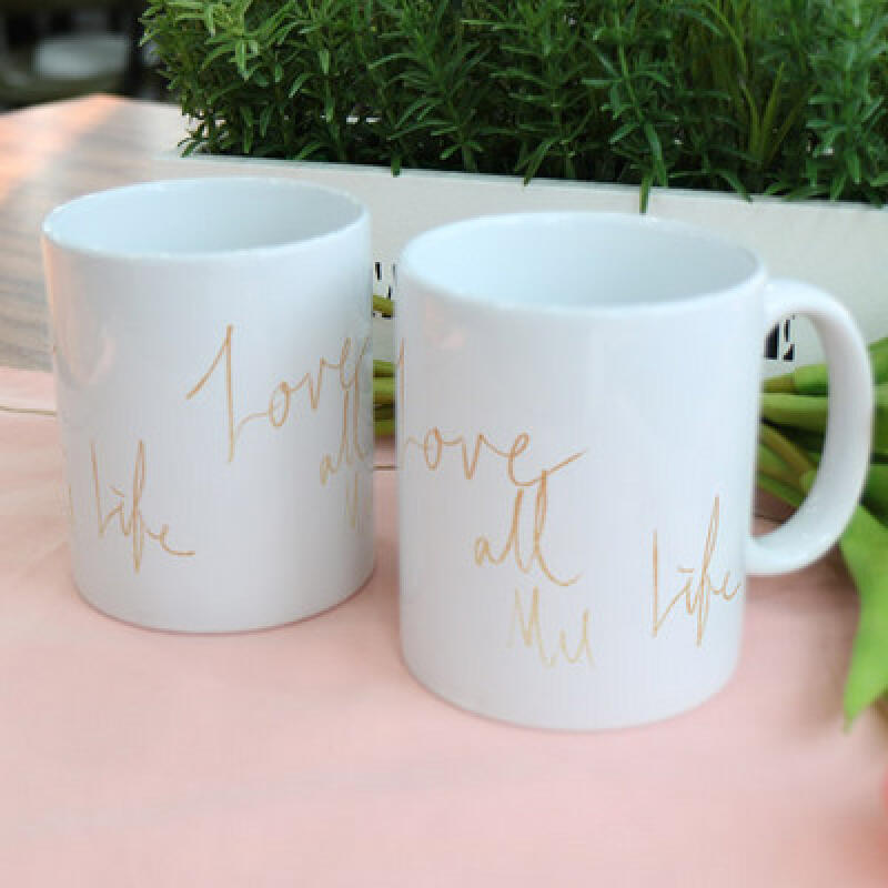 Ic665-Tasse Design 2p-Calligraphie Feuille d'Or
