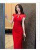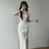 Evening dress women's new high-end modified cheongsam dress hip-wrapped split sexy tight dress summer