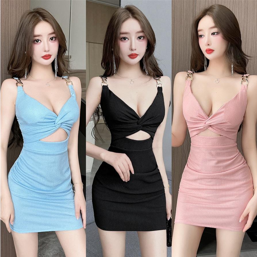Temperament V-neck low-cut sexy jacquard elastic hollow tight body hip-wrapped waist bottom short dress women