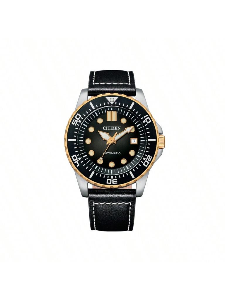 NJ0176-10E 43mm 100-meter Water-Resistant Automatic Diving Men's Watch with Genuine Leather Strap