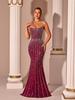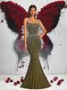 Robe de soirée sirène sans bretelles à diamants avec fente haute et dos ouvert