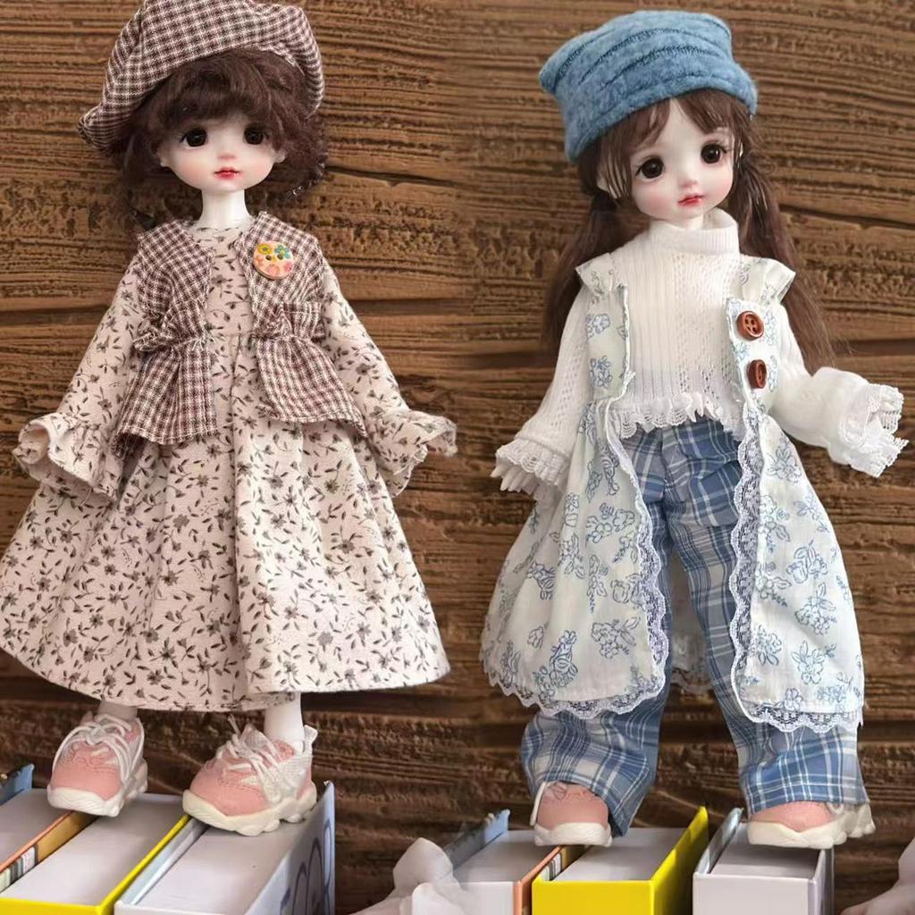 1/6 BJD Doll Trench Coat & Dress Set for 30cm Chubby Body Dolls - Coraline Dress-Up Outfit