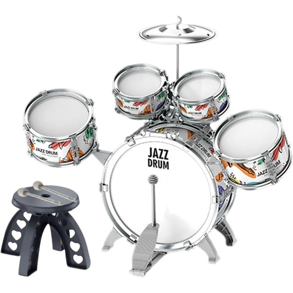 Ensemble de Batterie pour Enfants Kit de Batterie Jazz pour Tout-Petits Jouets avec Tabouret Pédale Percussion Instruments de Musique Jouet Batterie Cadeau d'Éducation Précoce pour Garçons