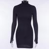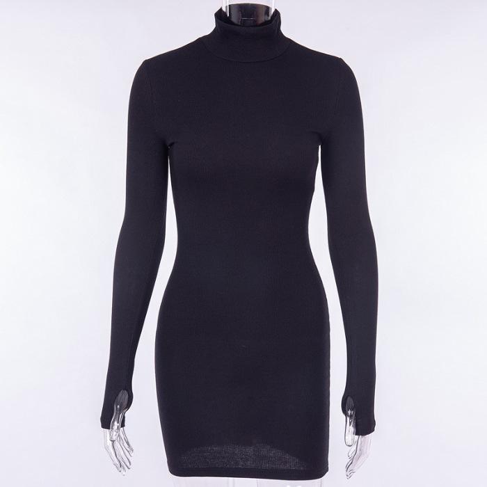 Women's Autumn Black High Neck Long Sleeve Slimming Dress - Hot Girl Style, Waist-Cinched, Hip-Hugging, Short Skirt