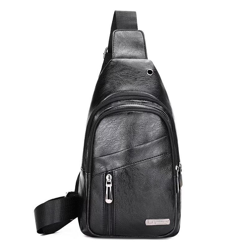 Sac bandoulière poitrine décontracté en cuir PU pour homme Lishin