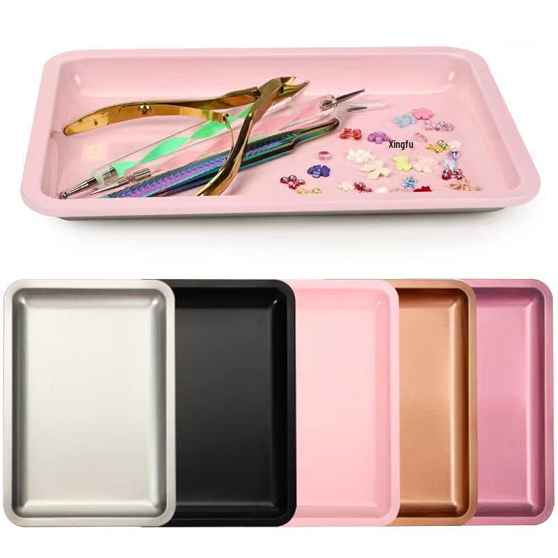 Stainless Steel Nail Art Storage Tray - Metal Jewelry Organizer with Multiple Styles
