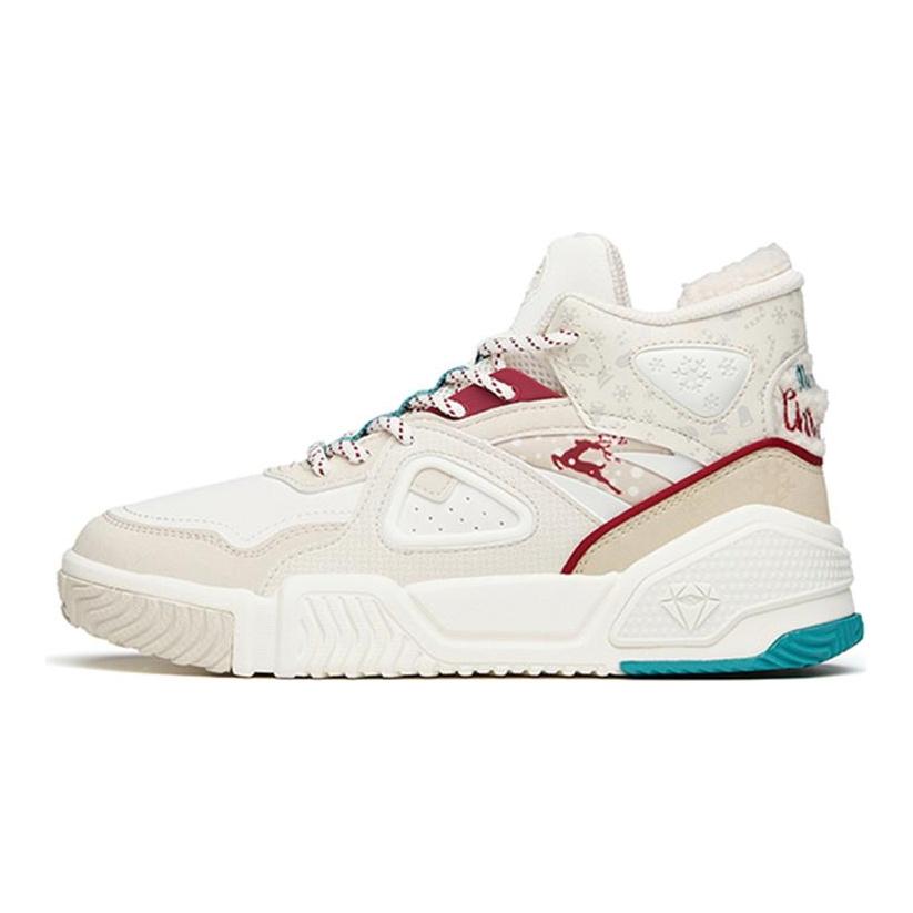 Anta Life Collection Flame Abrasion Resistant Breathable Mid top Skateboard Shoes Women's Gray White Red 122148088-8