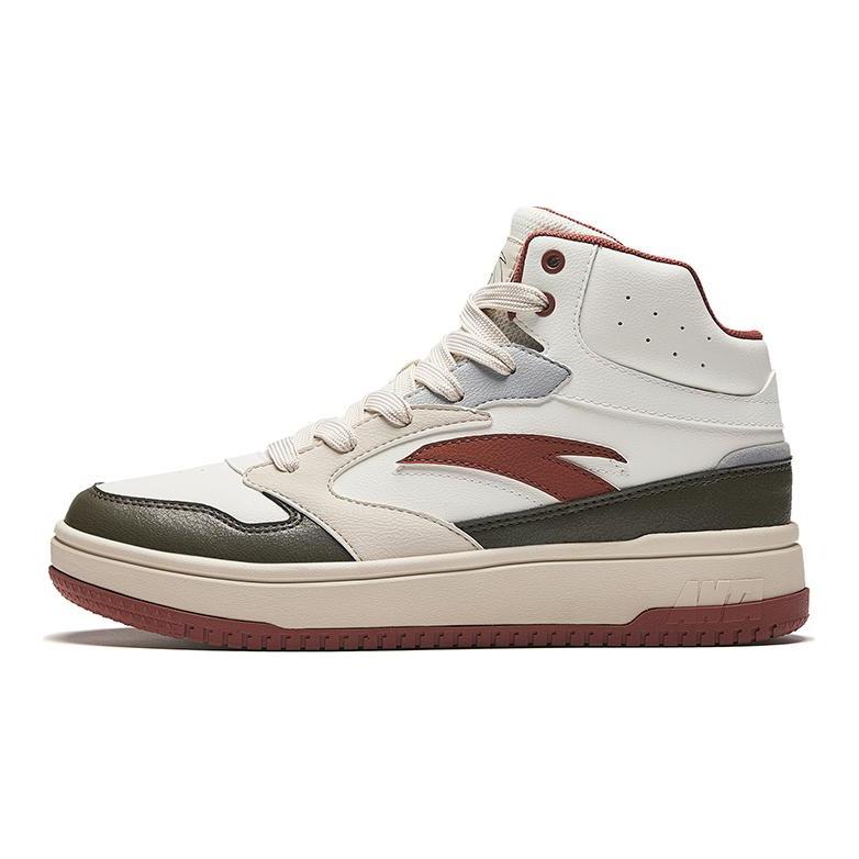 Anta Zero Sense Slip Resistant Abrasion Resistant Mid top Skateboard Shoes Men's White Black Red 912448083-2