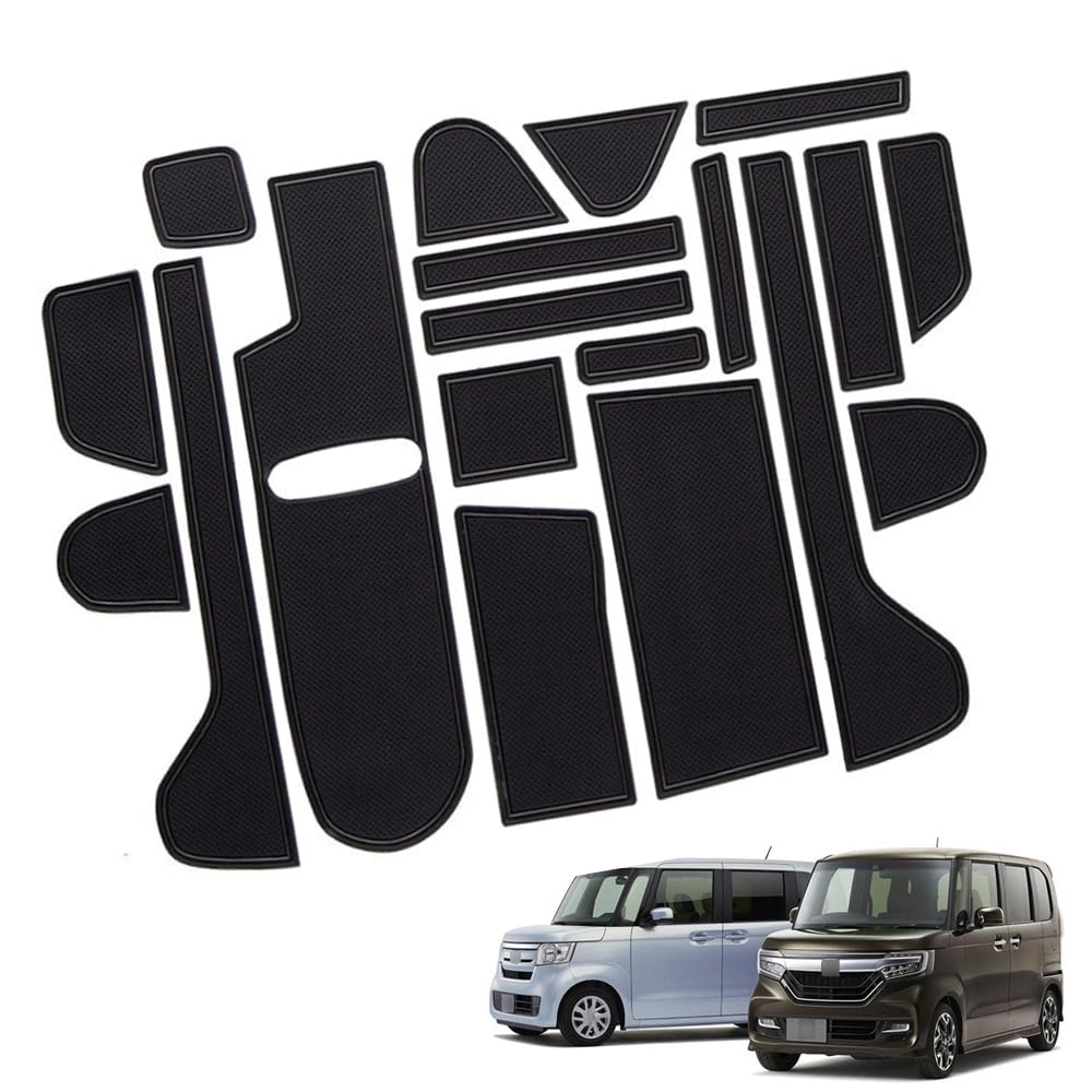 Tapis de Poche de Porte Spécifiques Honda pour N-BOX JF3/JF4, Tapis de Console, Tapis Intérieurs en Caoutchouc, Latex, Réduction du Bruit, Antidérapant, Lavables, Durables, Tapis Antidérapants, Accessoires, Pièces Intérieures, Installation Facile, Ensemble de 19 Pièces